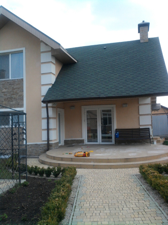 допоміжна площа: тамбур - 3.9 кв.м., хол - 32.5 кв.м., санвузол - 4.3 кв.м., комора - 3.6 кв.м., гараж - 40.3 кв.м., постирочна - 8.8 кв.м., коридор - 4.6 кв.м., кухня - 19.3 кв.м.,
