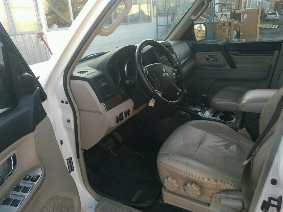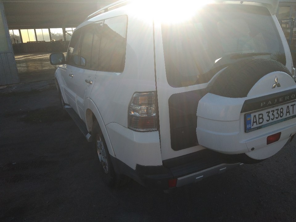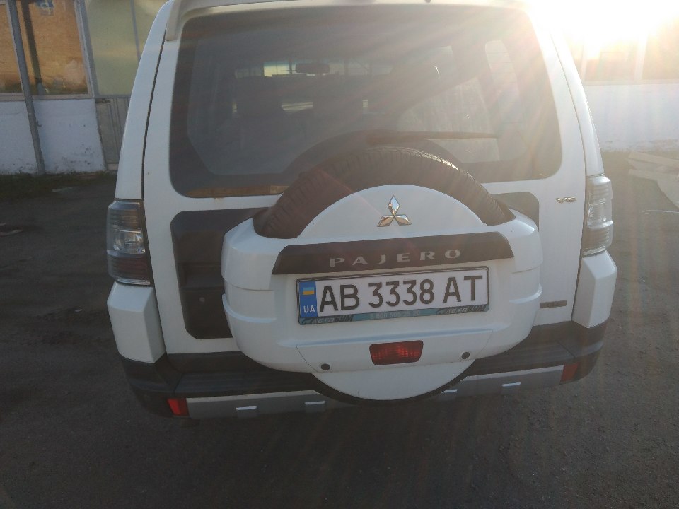 Автомобіль MITSUBISHI PAJERO, 2007 року випуску, білого кольору, № кузова: JMYLRV93W7J718890, ДНЗ АВ3338АТ. В наявності 1 ключ та державні номерні знаки. Технічний паспорт відсутній. Подряпини, потертості, плями, пошкодження по всьому салону, корозія задньої дверки, задньої арки, вм'ятини та відколи по всьому кузову, знос гуми 30-40%, висота протектора не встановлена, диски коліс в доброму стані, двірники, ущільнювачі та освітлювальні прилади в доброму стані, лобове скло має потертості та сколи. Сигналізація автомобіля не вимикається з брилка. Слідів відновлювальних робіт та ознак фарбування не встановлено. Відсутні домкрат, аптечка, буксирувальний гвинт. В наявності: запаснне колисо, АКБ - розряжена.