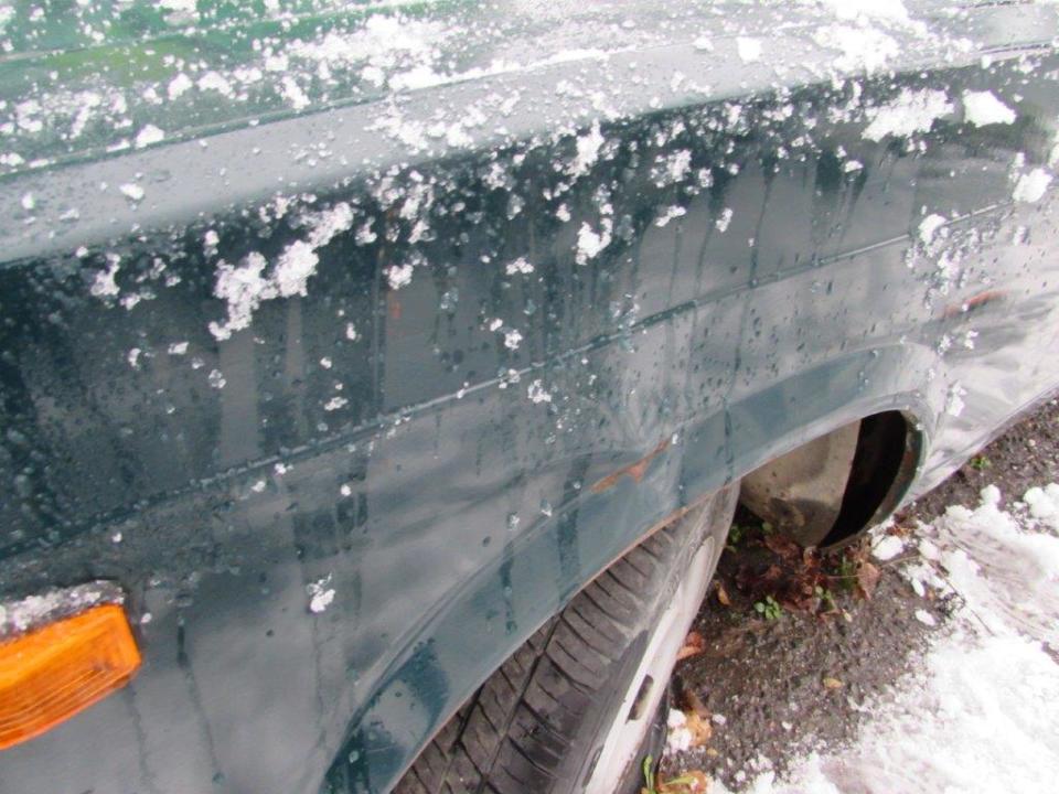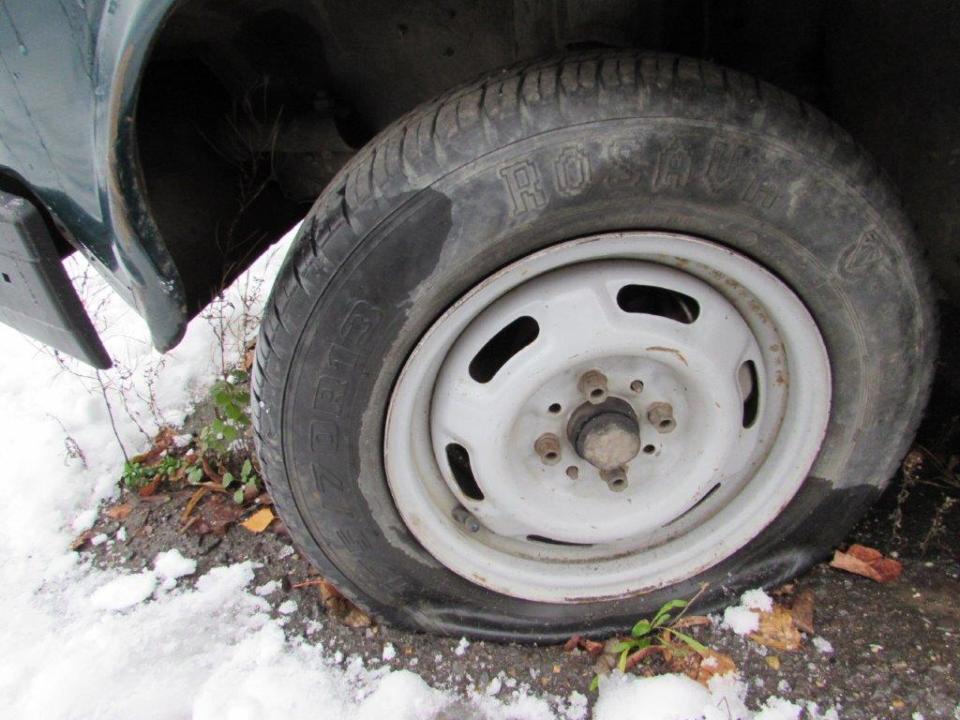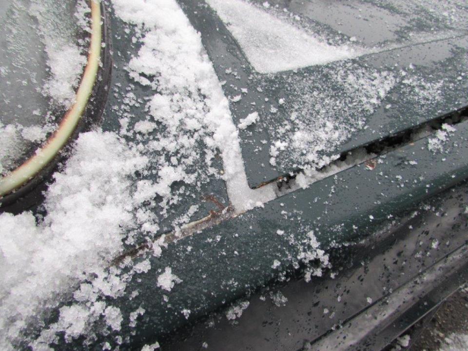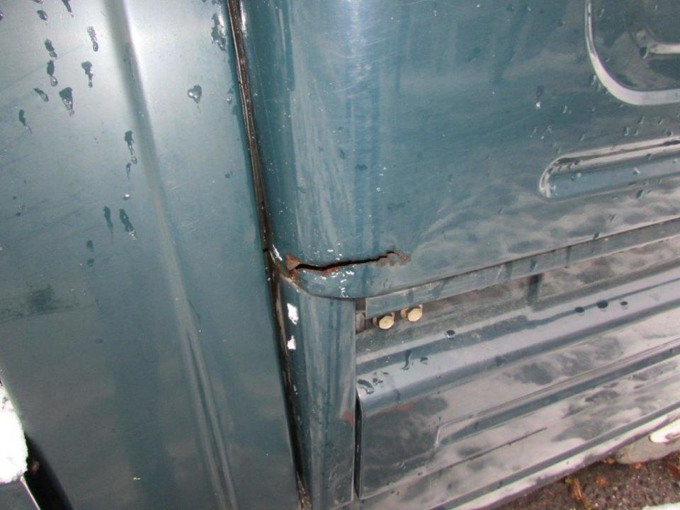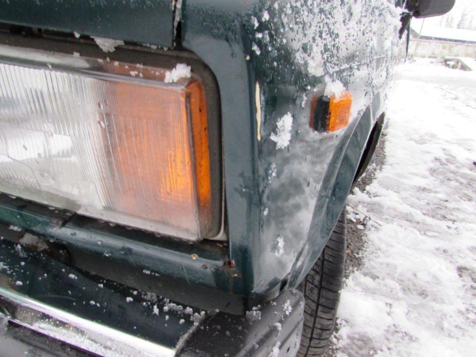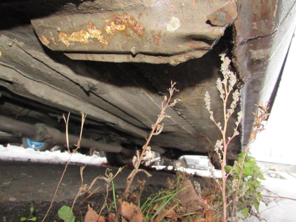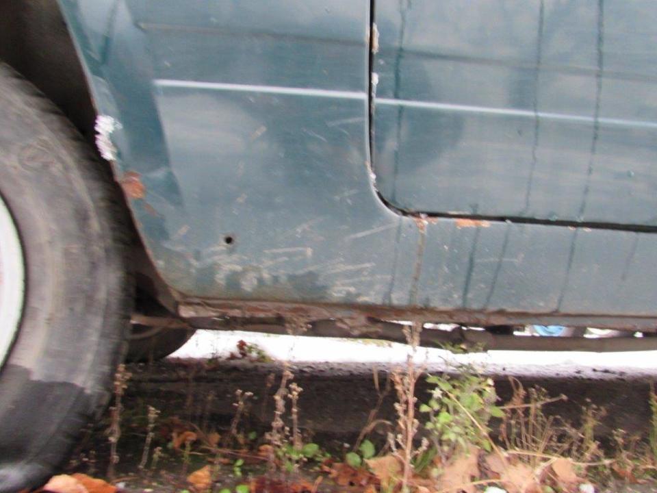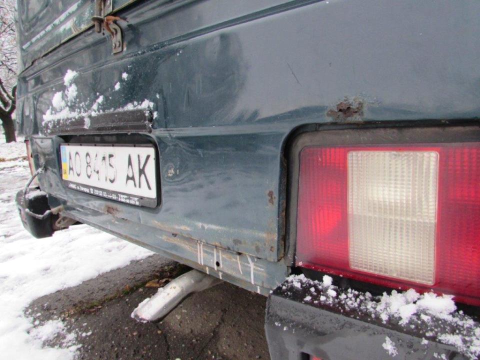 Сколи ЛФП капоту, сколи ЛФП та вм’ятини переднього лівого крила, сліди корозії переднього лівого крила, спущене переднє ліве колесо, сліди корозії переднього лівого колеса, сколи ЛФП лівої двері, сліди корозії лівого порогу, наскрізне пошкодження будки багажного відділення біля лівої двері, сколи та подряпини ЛФП заднього лівого крила, подряпини ЛФП кришки багажного відділення, сліди корозії кришки багажного відділення, тріщина корпусу заднього лівого ліхтаря, сліди корозії панелі задка, сліди корозії кріплення заднього правого бризговика, пошкодження заднього правого бризговика, сліди корозії заднього правого крила, вм’ятини та сліди корозії будки з правого боку, сколи та подряпини ЛФП правої двері, сліди корозії днища, сліди корозії труб вихлопної системи, сліди корозії елементів ходової частини, сліди підтікання мастила з редуктору, відсутня АКБ, сліди підтікання мастила у відсіку двигуна, пошкодження оббивки лівої двері, сліди зварювальних робіт на кермовій колонці, відсутня авто магнітола, пошкодження оббивки сидінь, забруднення оббивки салону, забруднення оббивки сидінь та інше. Автомобіль тривалий час зберігається на стоянці. Ходові випробування та перевірка працездатності автомобіля не проводились (відсутня АКБ). Оцінюваний ТЗ потребує проведення ремонту кузовних елементів, які пошкоджені корозійними утвореннями та вм’ятинами.