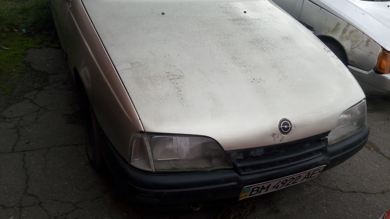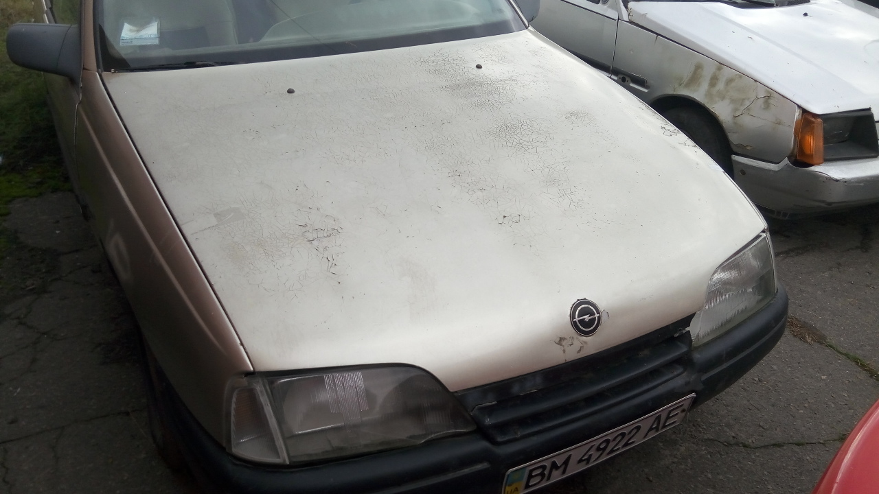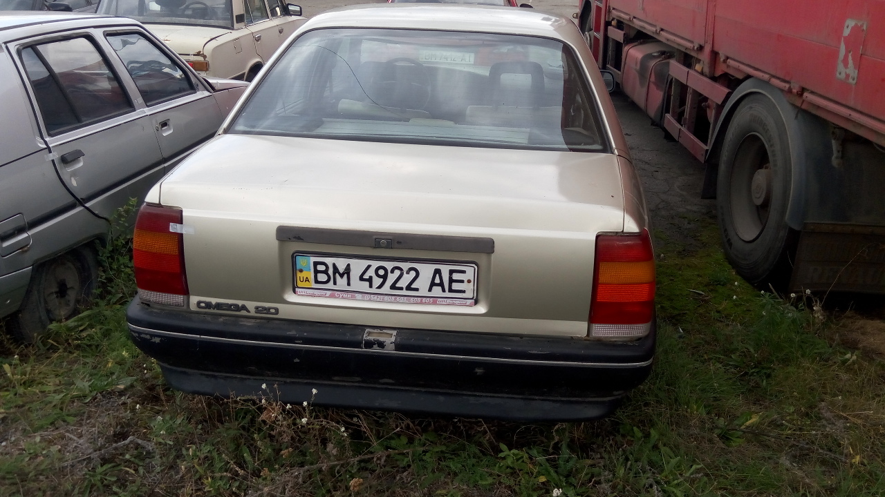Автомобіль Opel Omega 2.0І (легковий седан-В), 1988 р.в., реєстраційний номер ВМ4922АЕ, кузов № W0L000017J1051848. Кузов-видно сліди механічних та корозійних пошкоджень всіх частин, сліди вигорання та вздуття фарби. Передній бампер-сліди подряпин. Ходові властивості та роботу двигуна перевірити неможливо. Загальний стан незадовільний. ТЗ тривалий час простоює. Ключі в наявності, технічний паспорт відсутній.