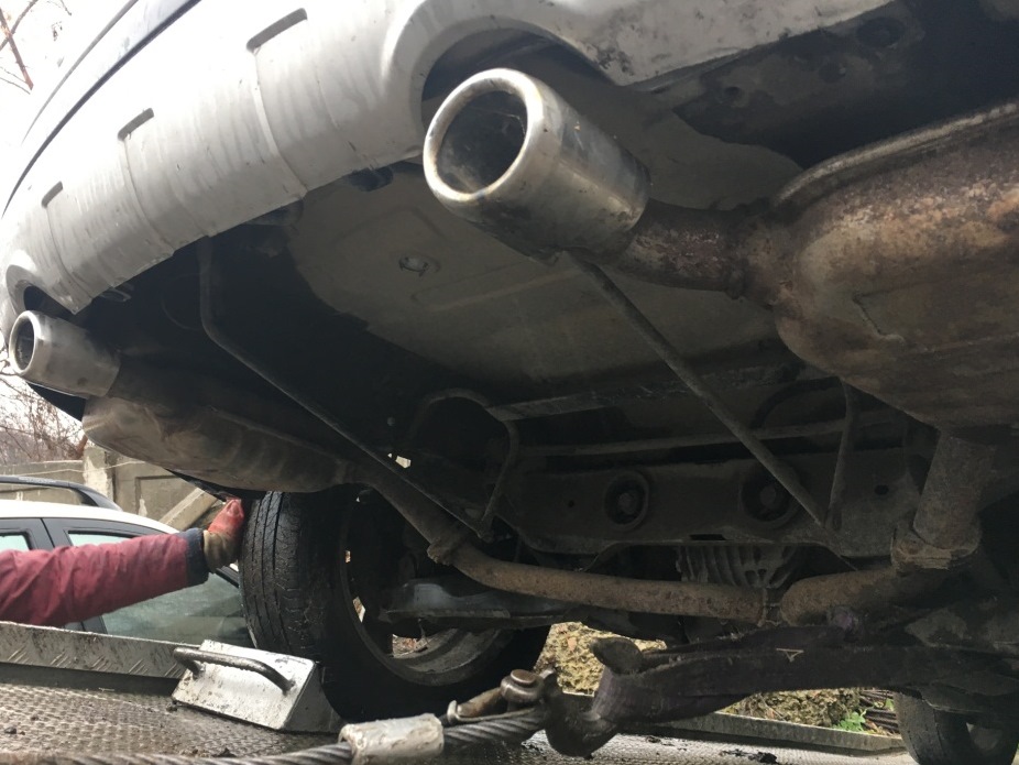 відсутній передній номерний знак, решітка правого переднього крила, пошкоджено передній бампер. Вм'ятини капота, правого та лівого переддніх крил, задньої лівої двері та крила, передня права двері. Корозія нижньої частини авто. Відколи ЛФП та подряпини по всім частинам авто.
