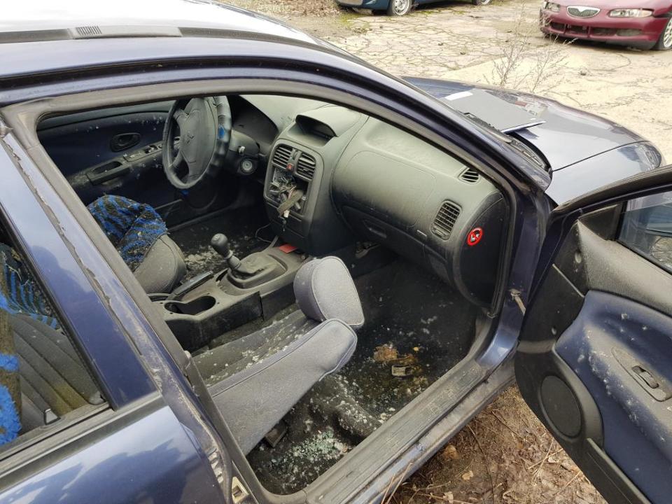 Автомобіль в неробочому стані. Пошкодження переднього бамперу з обох сторін, розбито скло задньої правої двері, вм'ятини та подряпини на задньому правому крилі, пошкодження заднього бамперу, по всій площі кузову містяться подряпини (місцямі значні) та потертості. Салон в незадовільному стані, сидіння не встановлені на місцях, матеріали салону забруднені та місцями подрані, магнітофон відсутній, в салоні містяться сліди цвілі. АКБ відсутня. Автомобіль відчинено. Ключі та техпаспорт відсутні.