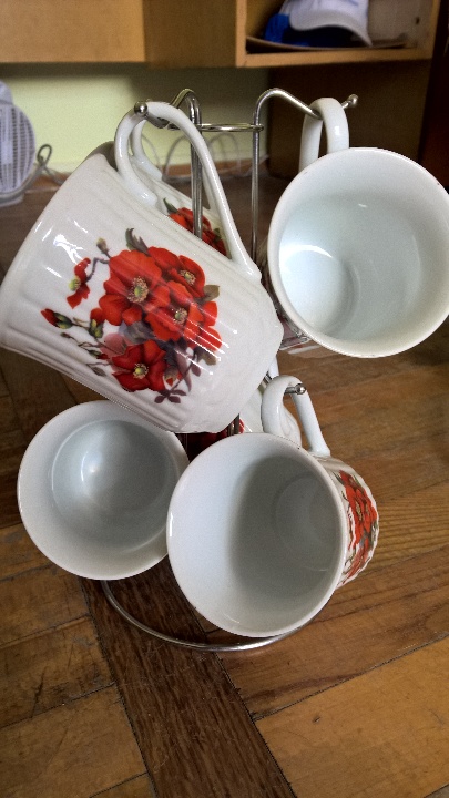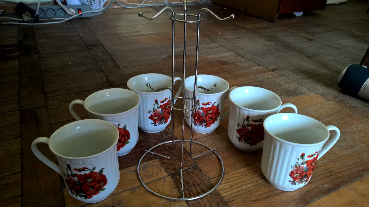 Набір горнят в кількості 6 шт. із металевим держателем.