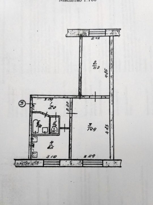 Висота приміщення 2,55м. Зовнішні стіни - з/бетонні панелі, матеріал перекриття - з/бетонні плити. Крім боржника, інші зареєстровані мешканці в приміщенні відсутні.