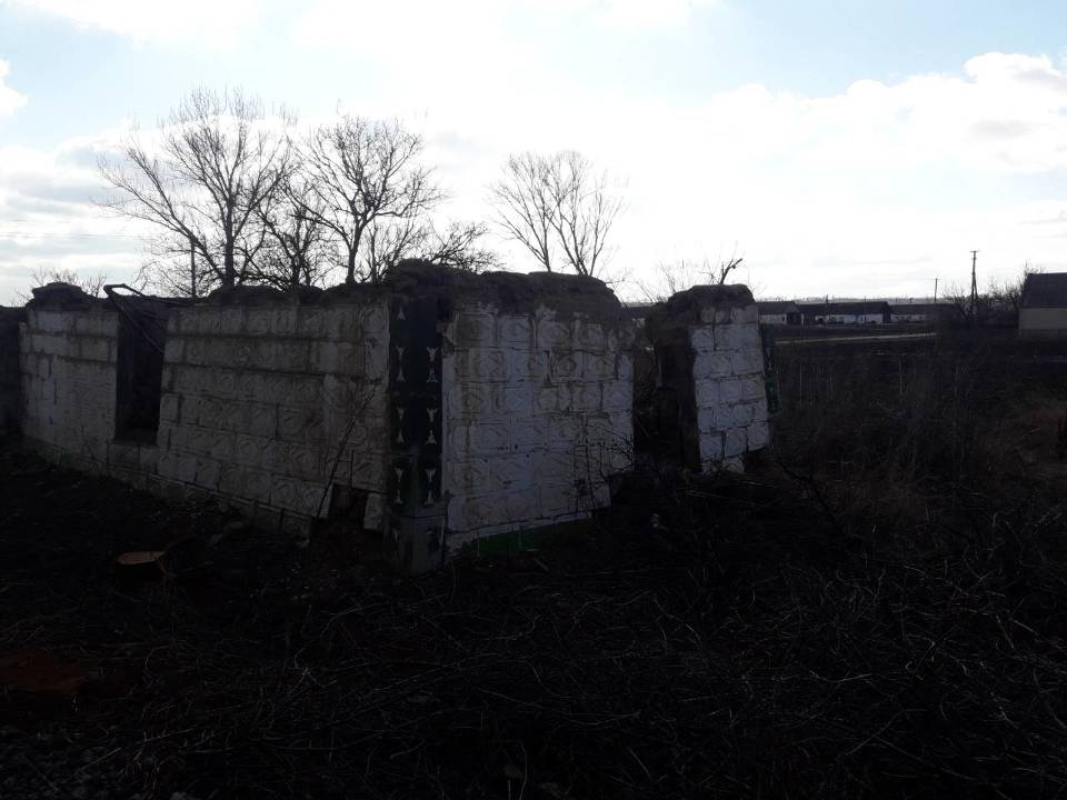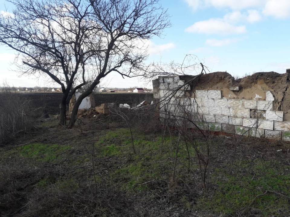 Будинок знаходиться в зруйнованому стані, стіни напів зруйновані, відсутній дах, двері, вікна, підлога, міжкімнатні стіни. Територія подвір'я не обгороджена, на території відсутні будь які добудови (згідно технічного плану на території повинні бути будинок, літня кухня, сарай, споруди).