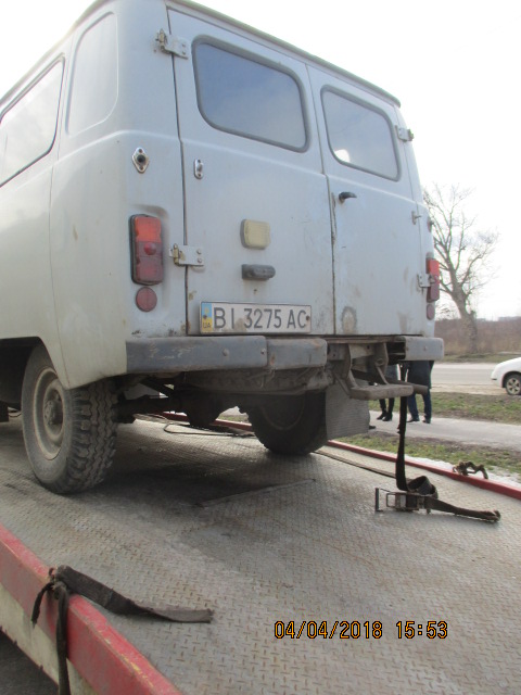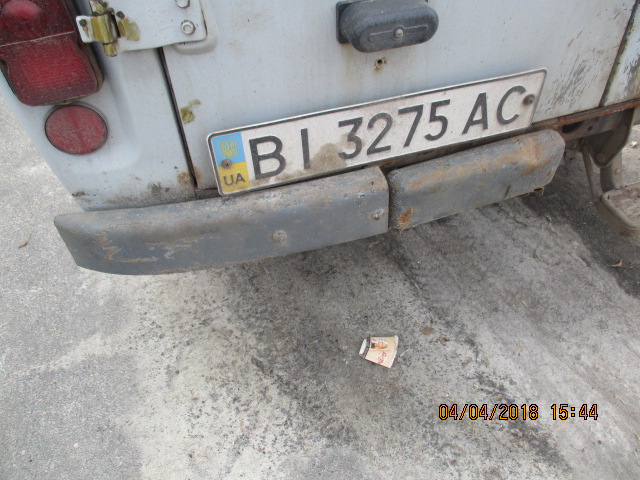 Колісний транспортний засіб: марки УАЗ, модель 452 ЛЭК, ДНЗ ВІ3275АС, кузов № 34252, шасі № ХТТ 330300Р0236884, рік випуску 1993, сірого кольору. На момент огляду КТЗ виявлено пошкодження ЛФП складових кузова, гуми колісні потребують заміни.