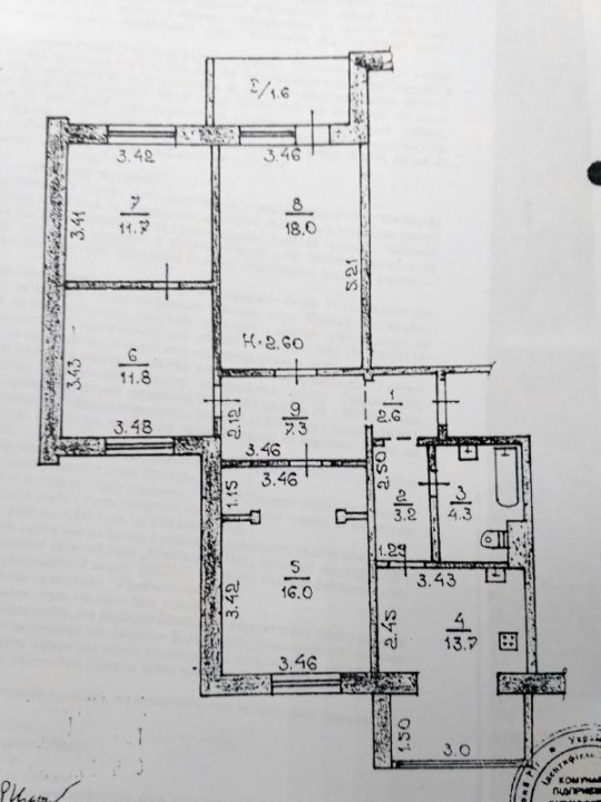 кухня - 13,7 кв.м., ванна кімната - 4,3 кв.м., коридор - 13,1 кв.м., лоджія - 1,6 кв.м.