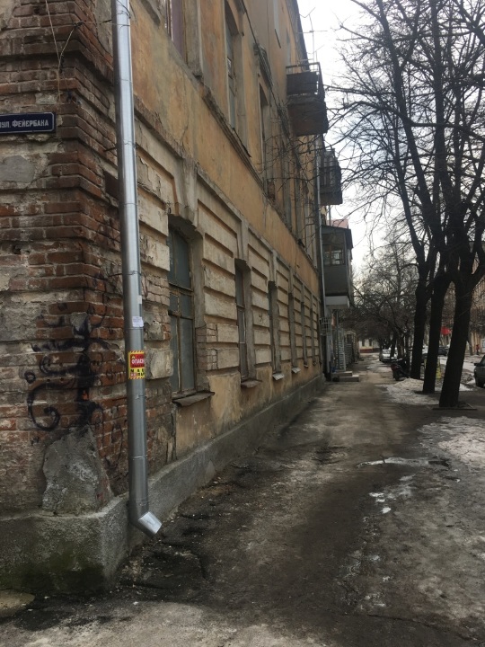 Загальна площа 88,3 кв.м. (з місцями спільного користування), з яких 42,9 кв.м. - площа місць спільного користування; 45,4 кв.м. - житлова площа (особистого користування); Матеріал стін цегла, перекриття дерево. Висота 3,5 м. В цілому, технічний стан квартири "незадовільний", потребує проведення ремонту. Квартира має велику заборгованість по комунальним платежам.