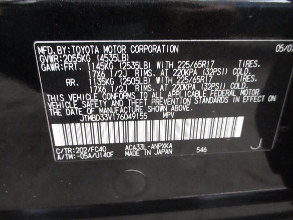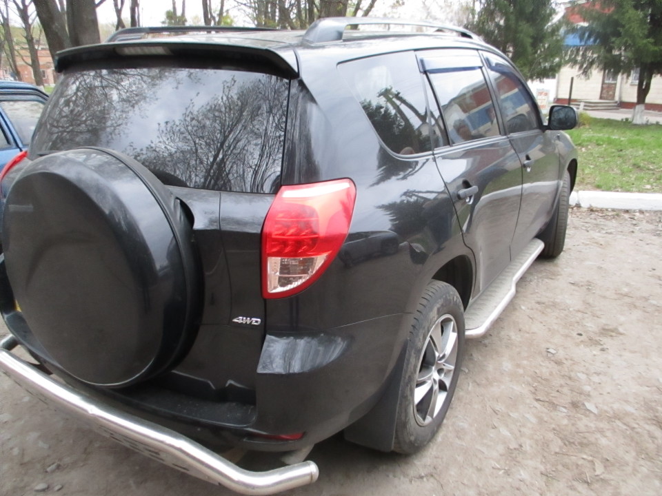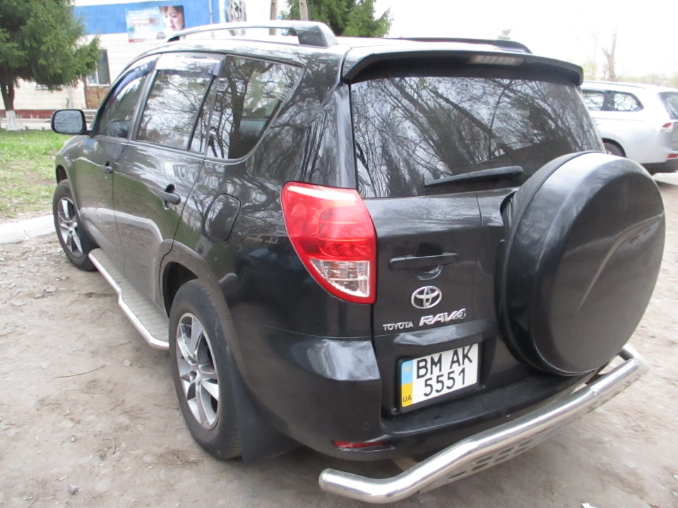 1/2 колісного транспортного засобу TOYOTA Rav4 2.4 (легковий універсал-В), 2007 р.в., реєстраційний номер ВМ5551АК, кузов № JTMBD33V176049155. Показники одометра: 81980 миль*1,60934= 131934,0 км. Кузов - помітні незначні сліди подряпин. На правому задньому крилі незначна вм'ятина в вигляді цятки. Ходові властивості та робота двигуна не перевірялись. Шини середньої зношеності. Загальний стан добрий.