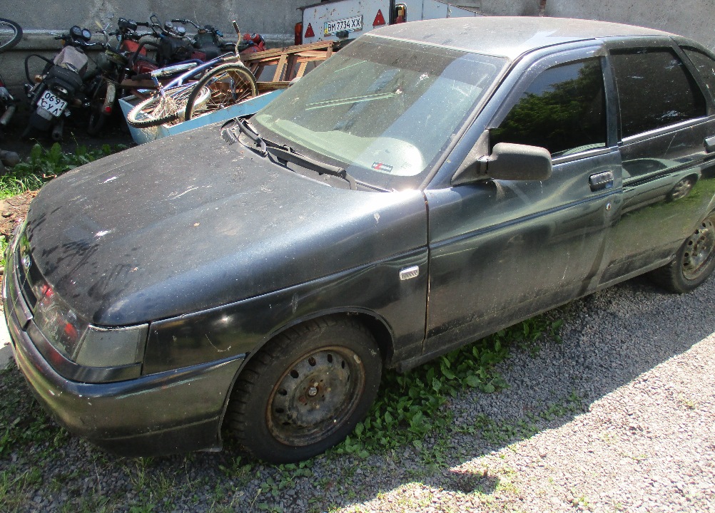 Автомобіль ВАЗ 21124 (легковий комбі-В), 2008 р.в., реєстраційний номер ВМ1505АК, кузов № ХТА21124080552188. Показники одометра визначити неможливо. Бампер задній (ліва сторона)-подряпини. Крило заднє ліве-деформація, пошкодження ЛФП. Бампер передній (права сторона)-розбитий. Крило переднє праве-іржа. Фонарь задній лівий/правий-розбите скло. Двері задні праві-злущення фарби, подряпини. Крило заднє праве-корозійне пошкодження. Поріг правий-пошкодження ЛФП, іржа. Двері передні праві-наскрізна діра. Капот-дрібна деформація, пошкодження ЛФП. Двері передні ліві-корозійне пошкодження по ребру. Забруднення оббивки салону, даху салону, сидінь. Кожух рульової колонки (пласт.)-відсутній. Колісні диски-вкриті іржею. АКБ потребує заміни.