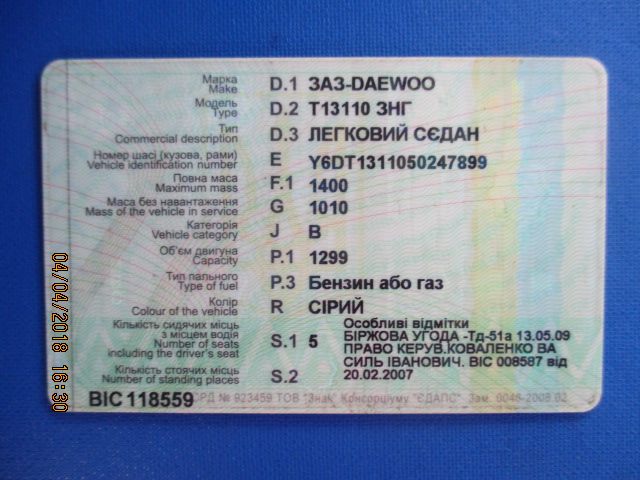 Колісний транспортний засіб: легковий седан, марка ЗАЗ DAEWOO Т13110 ЗНГ, ДНЗ ВІ1909ВС, рік випуску 2005, сірого кольору.