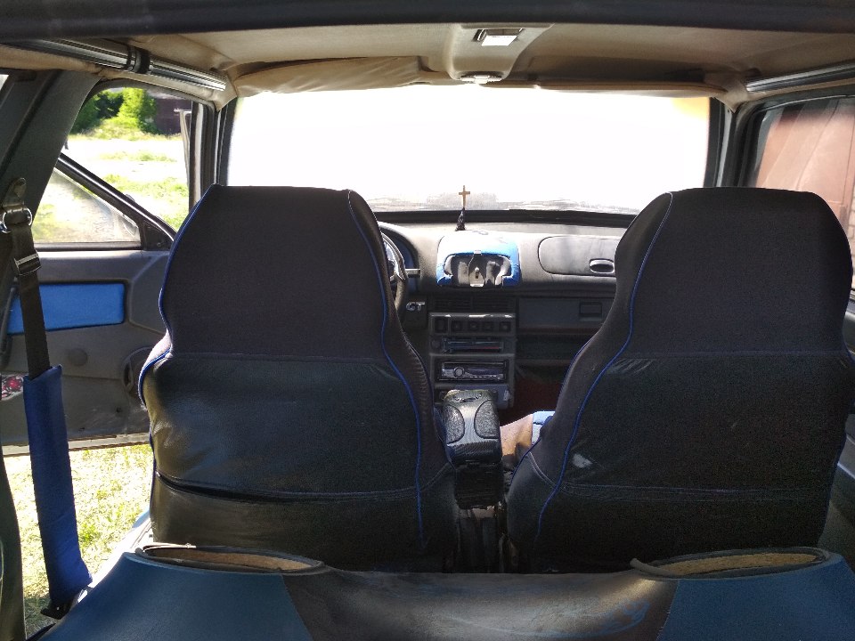 Наявні дефекти: пошкодженно лакофарбове покриття кузову, наявні подряпини по всьому кузову, зношена гума, тріщина переднього бамперу, забруднення оббивки сидінь та салону.