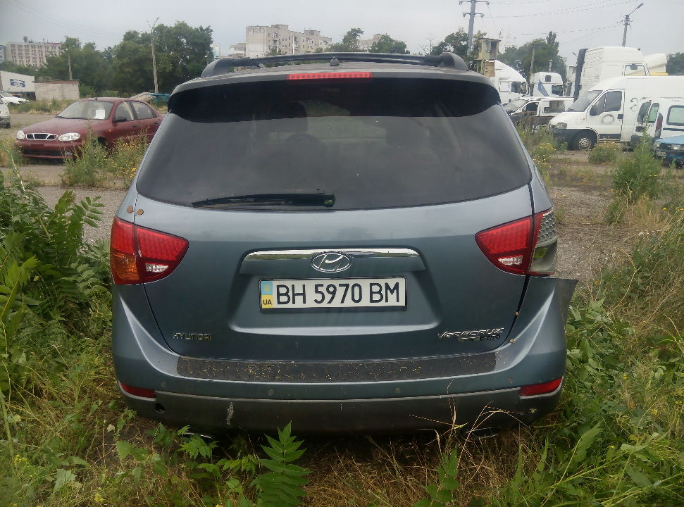 Транспортний засіб HYUNDAI VERACRUZ, 2007 року випуску, ДНЗ ВН5970ВМ, номер кузову: KMHNU81CP8U023075. Знаходиться в незадовільному стані, не на ходу. Відсутній акумулятор, двигун не заводився. Гума та диски відсутні. Має пошкодження кузову, потребує ремонтно-відновлюваних робіт.