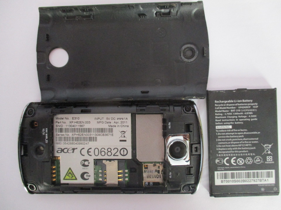 Мобільний телефон марки “ACER E310” з флеш-картою MicroSD торгової марки “Transcent” об'ємом памяті на 16GB