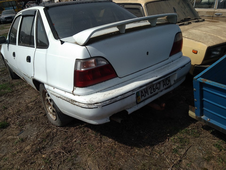 Автомобіль DAEWOO NEXIA, 2004 року випуску, білого кольору, № кузова ULV3D31UD4A013602, ДНЗ АМ2647АС. Обшивка салону в незадовільному стані, брудна. Пластикові елементи обшивки салону та панель приладів розукомплектовані та пошкоджені, проводка в незадовільному стані, запобіжники звисають. Відсутня автомагнітола та килимки. Зламано ручку відкривання капоту. Багажний відсік в незадовільному стані, відсутнє запасне колесо. В наявності ключ та ДНЗ (пошкоджені). Технічний паспорт відсутній. Знос гуми 80-90%, диски коліс в незадовільному стані (відсутні ковпаки), колеса не накачуються. Автомобіль не замикається ключем. Замки в незадовільному стані та відсутні. Комплектація автомобіля відсутня (АКБ, домкрат, аптечка, вогнегасник, запасне колесо, автомагнітола). Комплектація та стан двигуна невстановлені, двигун та паливна апаратура в мастилі, відсутнє ГБО, проводка в незадовільному стані, освітнювальні прилади в незадовільному стані, відсутні ходові вогні та вказівники поворотів. Пошкодження лакофарбового покриття та вм'ятини по всьому кузову. Захист крил та брезговики мають пошкодження. Передній та задній бампера мають тріщини. Двірники та ущільнювачі в незадовільному стані, битий лівий стоп, деформовані праве переднє та ліве заднє крила, відсутні молдінги та вітровики. Випускна труба провисає.