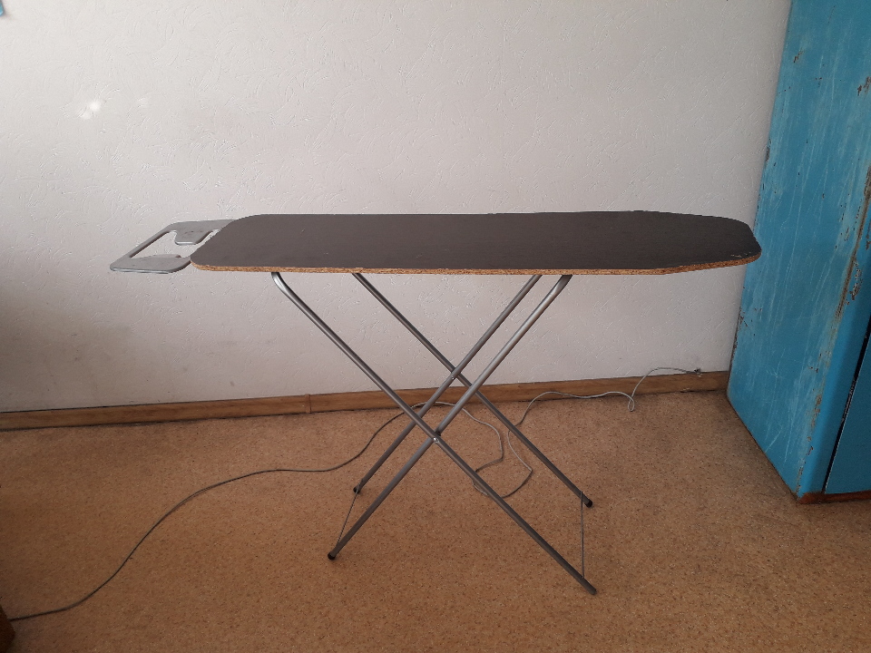 Гладильна дошка, чорного кольору. Має незначні подряпини зверху, подряпини з правого та лівого боку. У задовільному стані.