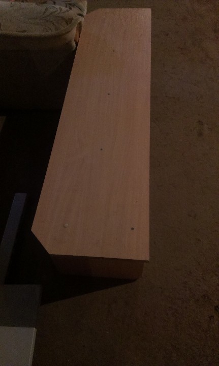 Лавка світло-коричневого кольору, матеріал ДСП, розміром 47х35х140см, б/к, поверхня із відколами