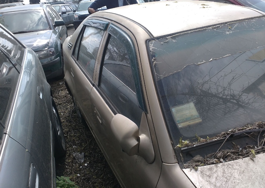 Задній бампер пошкоджений, ліва сторона заднього бамперу зі слідами відновлювальних робіт, по кузову наявна корозія та подряпини, лобове скло розбите, відсутній акумулятор, знос автогуми-100 %. Транспортний засіб знаходиться на арештмайданчику ХФ ДП "Інформ-ресурс".