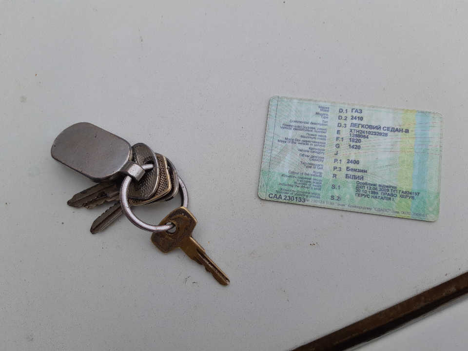 Транспортний засіб марки ГАЗ 2410 1989 р.в., білого кольору, кузов №ХТН2410232928, реєстраційний номер ВО5718АО, бензиновим двигуном об'ємом 2400. В наявності реєстраційні документи та ключ запалювання. Відсутній акумулятор. На автомобілі наявні наступні недоліки поверхні кузова: - пошкодження (вм'ятини) передніх та задніх крил, -значні корозійні відколи фарбового покриття по усій поверхні, -вм'ятина на багажнику та дверках, - салон із значним зносом оббивки салону та панелі приладів, - зношений протектор скатів, -мікротріщини лобового скла, - тріщина лівої протитуманної фари. Комплектність вузлів та агрегатів не встановлювалась.