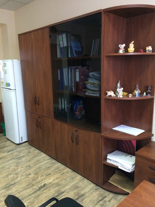 Меблева стінка з 6 частин: 2 тумби, шафа для бумаг, шафа під скло, дві кутові полиці
