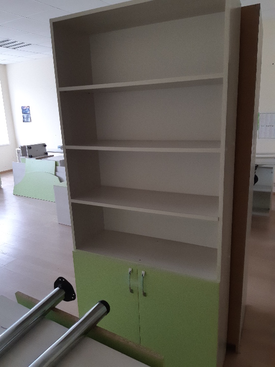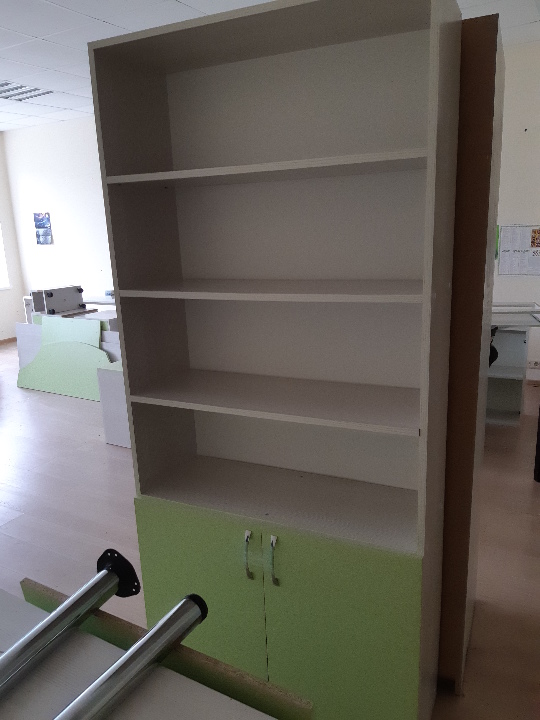 Офісна шафа двох дверна із 4 нішами (полицями), біло-зеленого кольору, матеріал ДСП, розміром 200х89х32 см., б/к