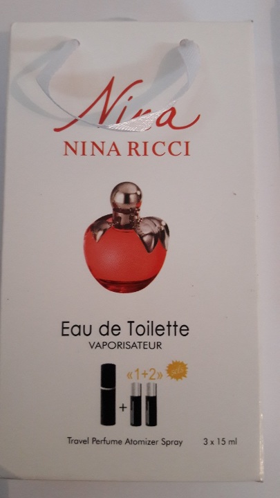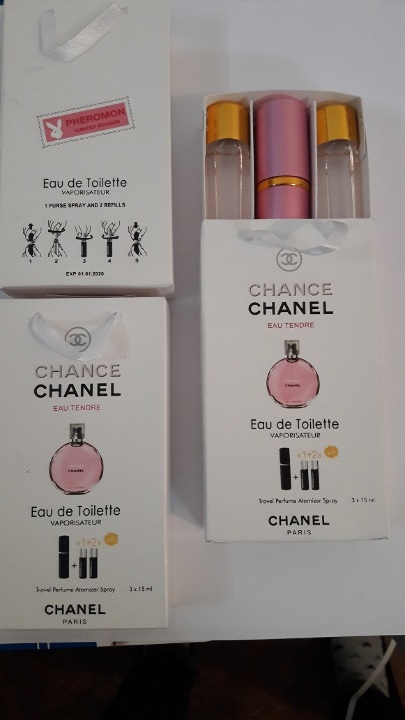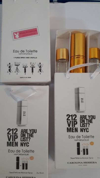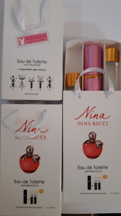 Туалетна вода в асортименті за надписом "Eau de Parfum" на упаковці, де містяться три спреї по 15 мл (паперова упаковка) у кількості 140 шт.
