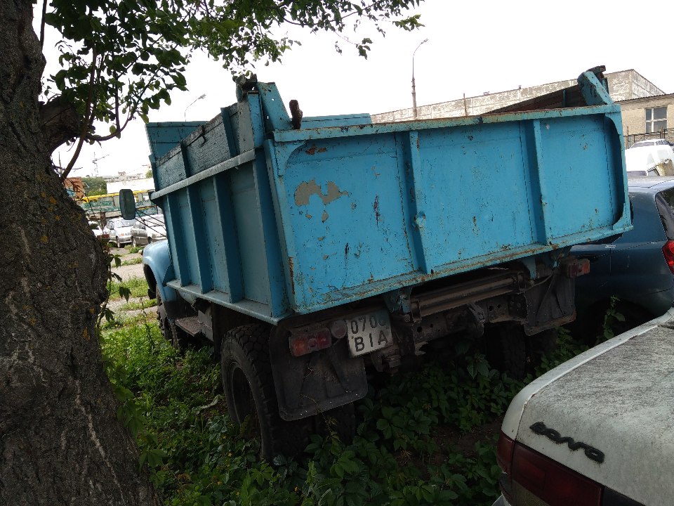 Автомобіль ЗИЛ 4502, 1992 року випуску, голубого кольору, № шасі 3246278, ДНЗ 0706ВІА. Ключі та технічний паспорт відсутні. Об'єм двигуна не відомий. На обліку в "НАІС ДДАІ" МВС України не перебуває. Перевірити справність підйомного механізму кузова неможливо. Моторний відділ не відкривається, достовірно перевірити його вміст та стан неможливо.
