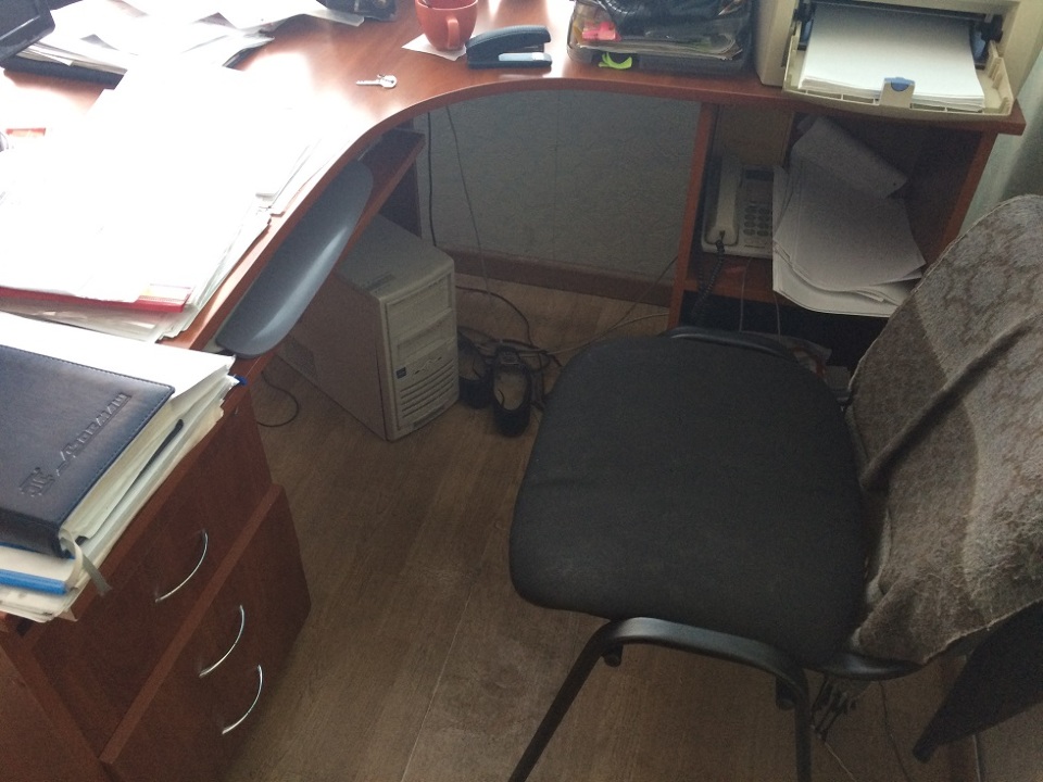Стіл кутовий двотумбовий - 4 шт., полиця для системного блоку - 3 шт.