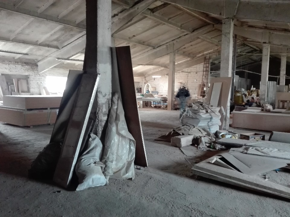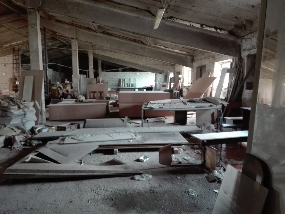 Фундамент - залізобетонні блоки; каркас - залізобетонні колони, ригелі; стіни, перегородки - цегляні; перекриття - залізобетонні плити; покрівля - азбоцементні листи; вікна - металопластикові, обрешечені; двері і ворота - металеві, пофарбовані; підлоги - бетонні. Електропостачання, місцеве опалення.