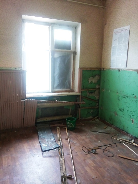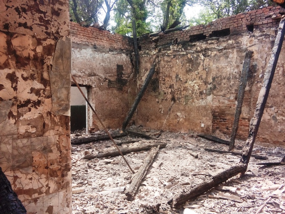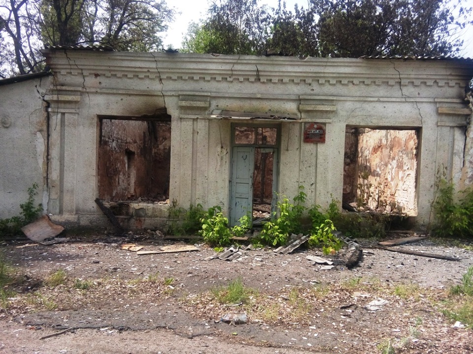 1.Нежитлова будівля залу засідань 1943 року побудови, площею приміщень 612,7 м2, двоповерхова будівля з червоної цегли, дерев’яні перекриття та стіни, дах з шиферу, вікна та двері частково пошкоджені, без скла, сходи з парадного входу напівзруйновані, зовні стіни мають пошкодження