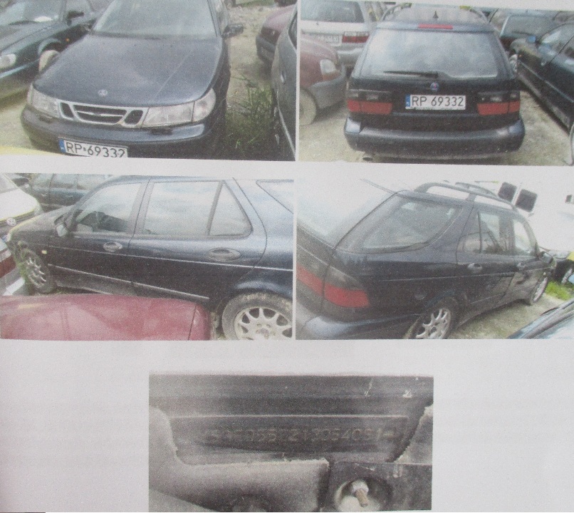 Транспортний засіб марки SAAB 9-5, 2001 року випуску, реєстраційний номер RP69332, № куз. YS3ED55E213054081, синього кольору, об'єм двигуна - 2290 см. куб., бензин, пробіг - не встановлено. Відомості про наявність/відсутність технічної документації та ключів відсутні.
