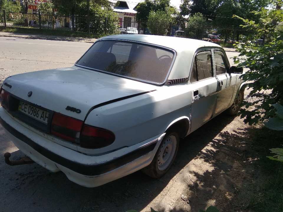 Легковий автомобіль «ГАЗ 3110» білого кольору, 2003 р.в., шассі 31100030556047, ДНЗ: СЕ0986АН, об’єм бензинового двигуна 2445 куб.см. Пробіг 244545 км. Стан: подряпини по всій поверхні лако-фарбованого покриття кузова, вся поверхня кузова вражена корозією, вм’ятини на задній правій дверці (після ДТП) і лівій задній дверці, обшивка салону в потертому стані, тріщини на лобовому склі, пошкоджене скло задніх ліхтарів, відсутнє скло передньої правої фари, відсутній передній бампер, вихлопна труба, ручка задньої правої дверки, відсутній АКБ, магнітола і колонки. Наявний: ключ запалення і свідоцтво про реєстрацію СЕС012250.