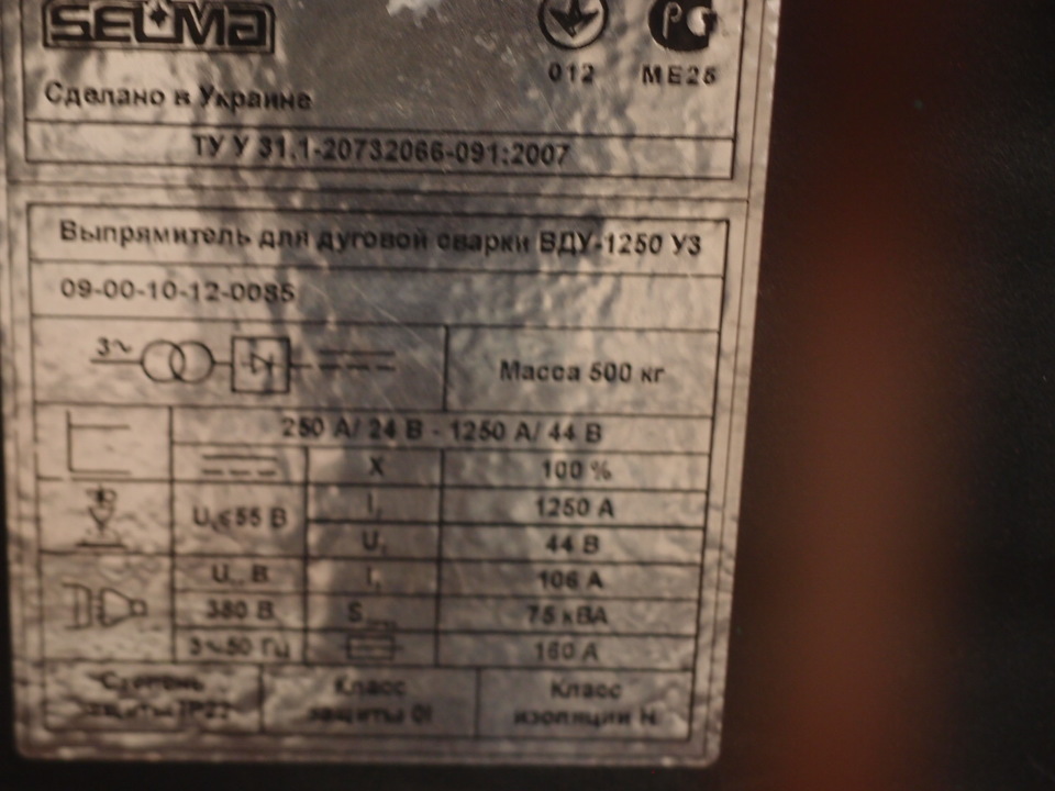Діапазон зварювального струму, А 250-1250; Максимальний зварювальний струм, А 1250; Напруга мережі, В 3х380;