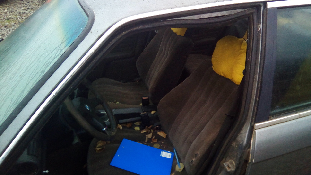 Легковий автомобіль BMW 324, темно-сірого кольору. ДНЗ: СЕ0235АО. Пробіг 214722 км. Кришка капота не відкривається, в зв’язку із чим не можливо встановити наявність двигуна. Відсутні магнітола, противотуманні фари. Обшивка салону та сидінь в порваному та затертому стані. Наявна корозія та подряпини по всій поверхні кузова. Вм’ятини на задньому лівому та правому крилі. Наявний ключ запалення.