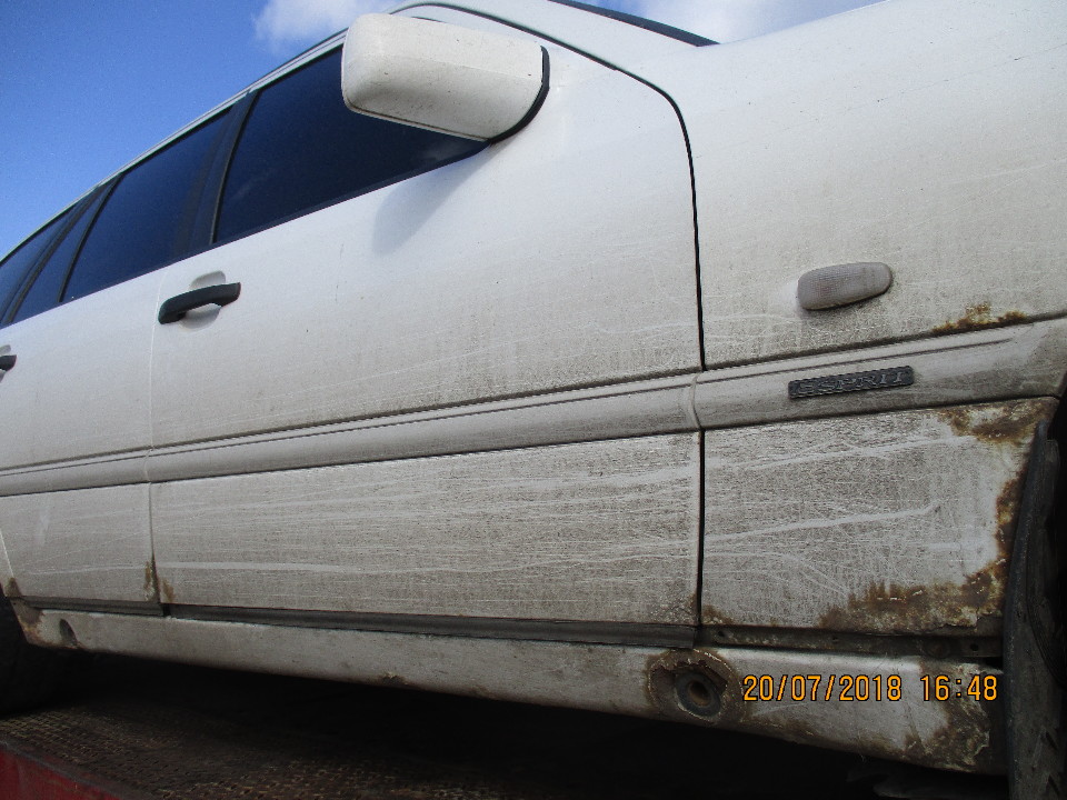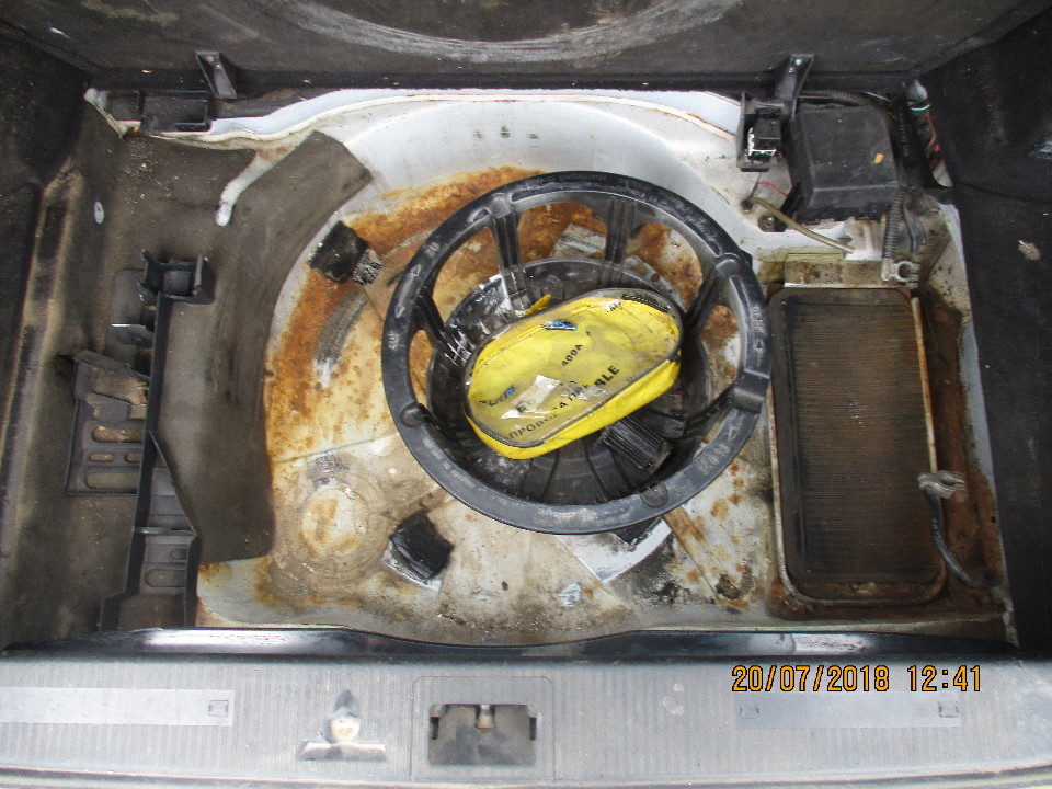 Ключі та технічний паспорт відсутні, акумуляторна батарея відсутня (встановити справність двигуна, його комплектуючих, КПП, ходової, немає можливості). По усьому кузову ознаки корозії, пошкодження ЛФП та сліди відновлювальних робіт. Ліва передня та задні фари пошкоджені. Демонтована пластикова накладка лобового скла з двірником. Пошкоджений передній бампер. Відсутнє запасне колесо. Салон у незадовільному стані, відсутня автомагнітола. Пробіг встановити неможливо.