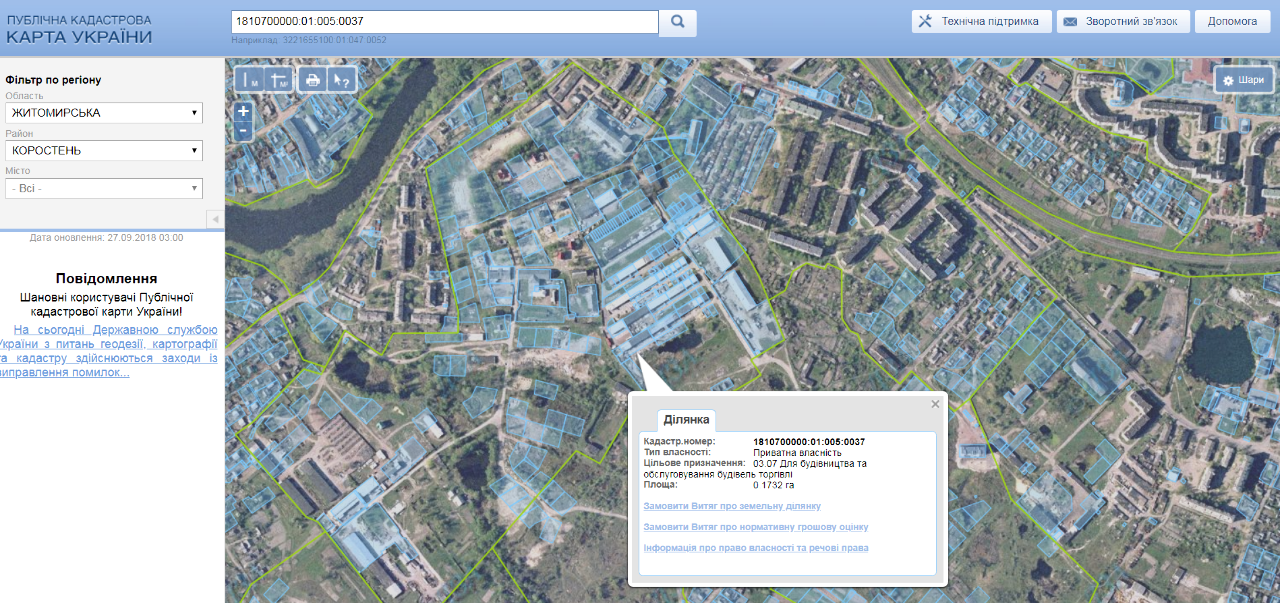 та земельна ділянка реєстраційний номер земельної ділянки: 010521000344, площею 0.1732 га кадастровий номер 1810700000:01:005:0037, цільове призначення: для будівництва та обслуговування будівель торгівлі, що розміщені з адресою: Житомирська обл., м.Коростень, вул.Сосновського, буд. 38-Р.Державний акт на право приватної власності на землю ЯА №425864 від 15.09.2005 р виданого Коростенською міською радою.