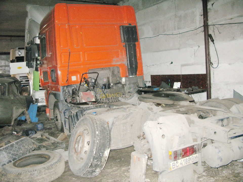 Автомобіль DAF ТЕ48XS, сідловий тягач - Е, 2001 року випуску, жовтого кольору, номер кузова XLRTE47XS0E556499, реєстраційний номер ВС4108ВМ, обєм двигуна - 12580 см. куб., пробіг - не встановлено. Кількість циліндрів - 6, привід - 4х2, повна маса - 20500 кг, маса без навантаження - 8500 кг, колісна база - 3800 мм. Технічний стан - незадовільний. Транспортний засіб перебуває в неробочому частково розукомплектованому стані. На кабіні та рамі КТЗ та їх складових елементах наявні поверхневі корозійні пошкодження. Наскрізних корозійних пошкоджень не виявлено. Подекуди спостерігаються дефекти лакофарбового покриття (подряпини, потертості, тріщини, здуття, лущення, відшарування фарби). На двигуні, КПП та мостах наявні сліди підтікання мастила через ущільнення (прокладки), поверхневе забруднення. Ходова частина потребує ремонту, а саме, часткової заміни резино-металевих виробів та інших елементів. Електрообладнання загалом у робочому стані, частина електропроводки потребує ремонту та часткової заміни. АКБ відсутня. В салоні автомобіля (через тривале зберігання в неналежних умовах) наявне пошкодження оббивки салону, панелі, керма та сидінь пліснявою. Шини КТЗ до експлуатації не придатні. Відомості про наявність/відсутність ключів - відсутні. Свідоцтво про реєстрацію ВСС №209928 від 08.07.2008.