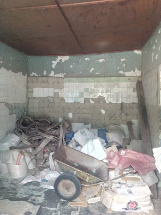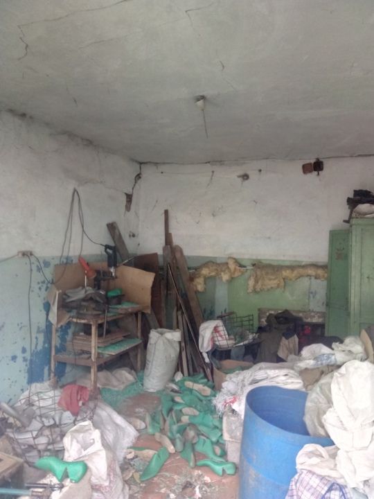 В цілому технічний стан об'єкта незадовільний. Фундамент - бетон, зовнішні стіни - шлакоблок, перекриття - дерево, покрівля - залізо, шифер, підлога -дерево, вікна - МПВ, двері - метал, внутрішнє опорядження - фарбуання, будівлю підключено до електропостачання, водопостачання, каналізації, опалення ( інформація про стан комунікацій відсутня).