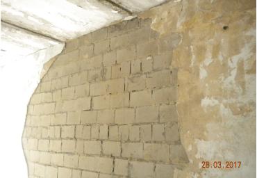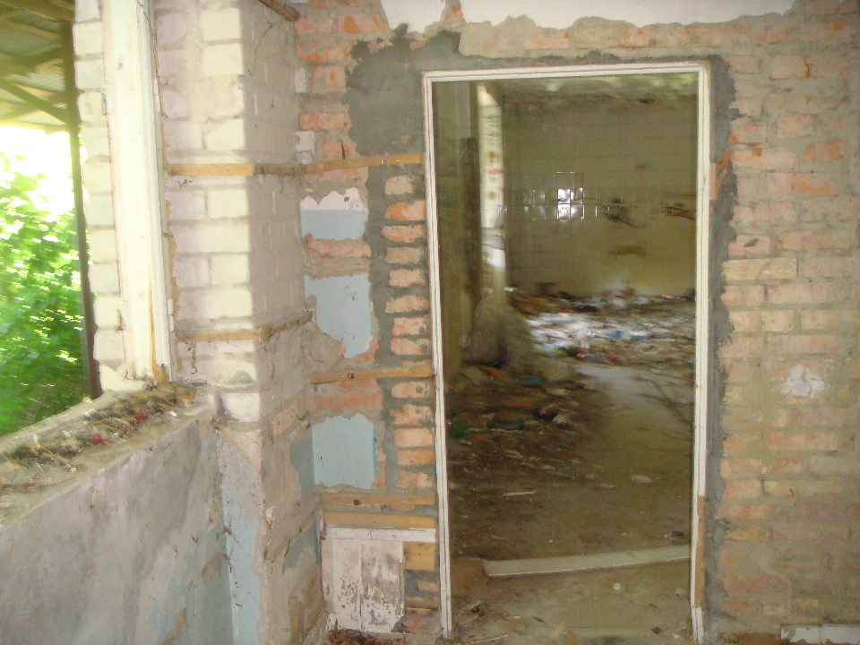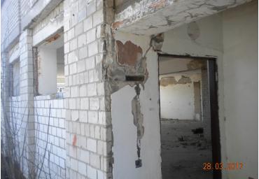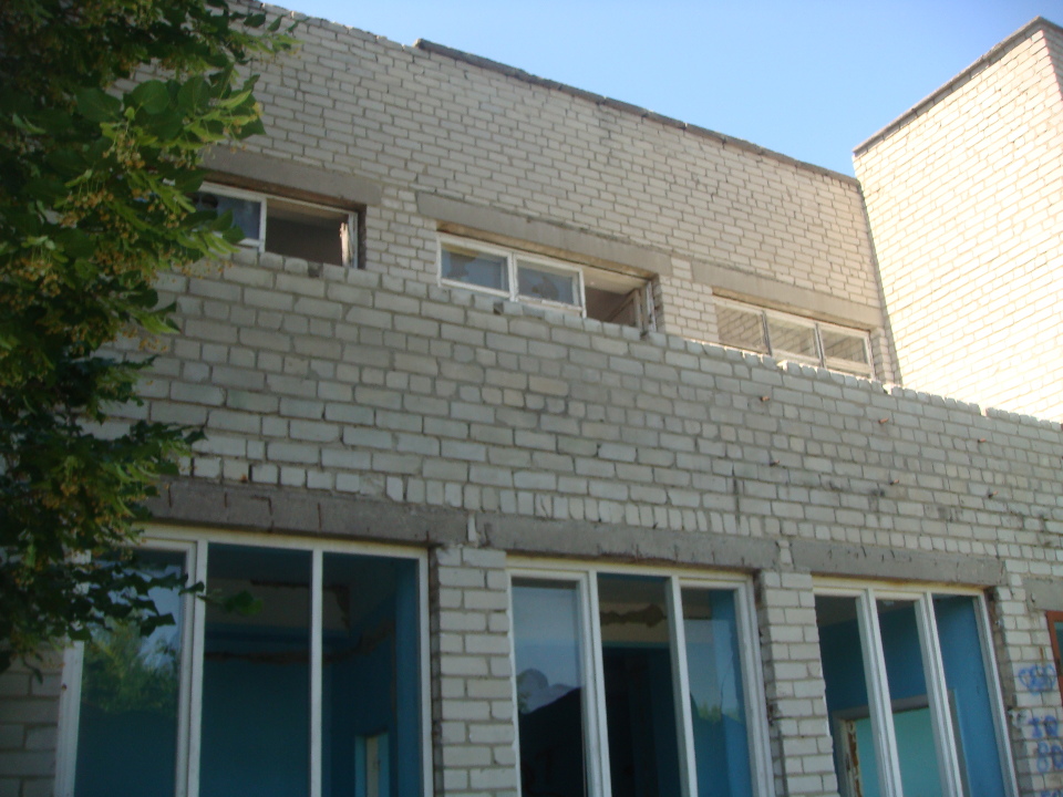 Будівля з цегляними стінами, залізобетонним перекриттям, на стрічковому фундаменті, дах сумісний, покрівля - рулонна, з рампою.