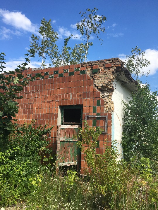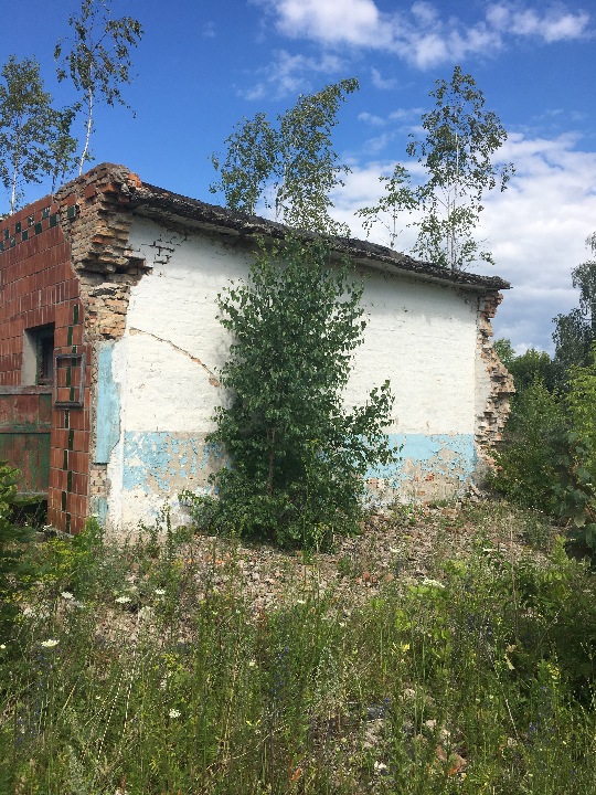 Будівля трансформаторної підстанції знаходиться у напівзруйнованому, аварійному стані, наявні значні ушкодження несучих елементів. Демонтовано частину стін. Дах будівлі заріс деревами. Будівля знаходиться у непридатному для використання стані.