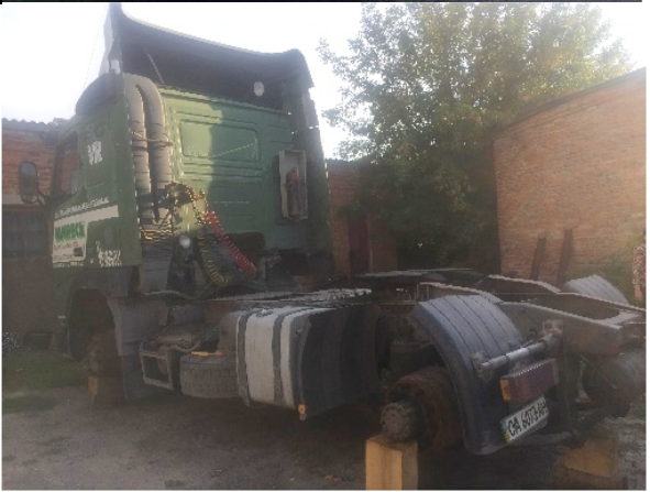 Вантажний автомобіль Volvo FH12.420, тип - сідловий тягач-Е, зеленого кольору, 1998 року випуску, державний номер СА6073АН, ідентифікаційний номер (VIN) YV2A4B3A8WB187693, об'єм двигуна - 12130 см. куб., пальне - дизель. КТЗ має пошкодження кузову: деформація без пошкодження лакофарбового покриття (даху, стояків боковин, полиць, дверей, оббивка сидінь, пофарбування кузова, скло має щілину), відсутні 6 колес у зборі та АКБ, сліди підтікання мастил. Автомобіль не на ходу і його технічний стан відповідає строку експлуатації та пробігу. Свідоцтво про реєстрацію транспортного засобу та ключі знаходяться у відповідальної особи продавця.