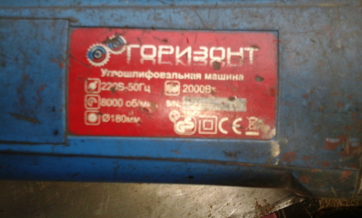 Кутошліфувальна машина (болгарка) марки «Горизонт», синього кольру, серійний номер: С80050276, б/в, стан робочий.