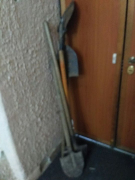 Лопата штикова, має іржу, держак пошкоджений (подряпини).