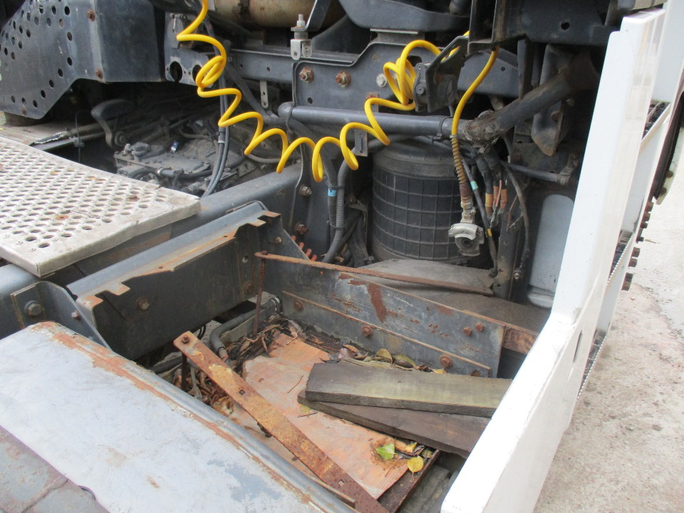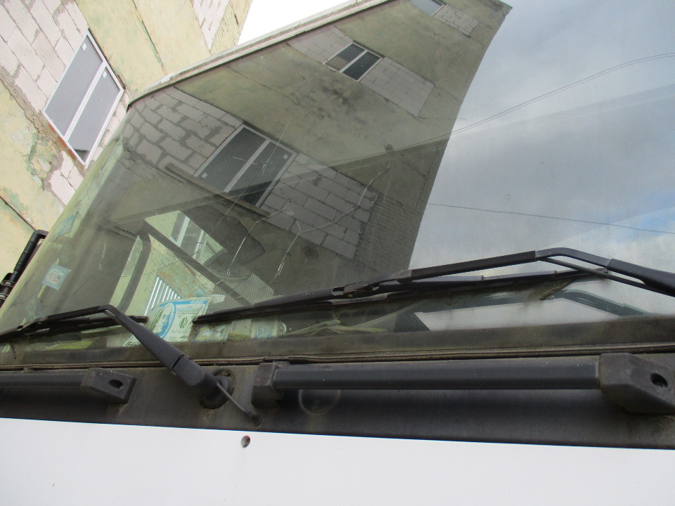 Наявні корозійні елементи корпуса тягача, пошкоджена обшивка салона ТЗ, салон брудний, пасажирські двері відчинені, зламаний замок від пасажирських дверей тягача. Наявні тріщини на лобовому склі. Перевірити робочий стан не вдалось.