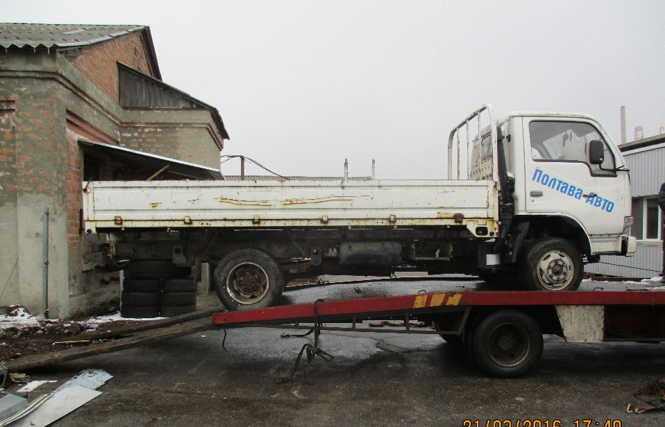 Колісний транспортний засіб: марки Dong Feng моделі  EQ 1044, реєстраційний номер ВІ8839АІ, 2005 року випуску, білого кольору, кузов Y6DB0510060950217, тип палива бензин. На момент огляду КТЗ в роботі не перевірявся. Виявлено чисельні пошкодження ЛФП складових кузова, чисельні корозійні пошкодження.