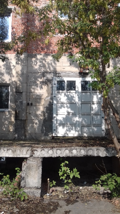 Фундамент-залізобетон, стіни-цегла, перекриття-залізобетонні плити, покрівля-рулонна, підлога-цементна стяжка, прорізи: двері - металопластикові (вхідні), ворота - металеві, внутрішнє оздоблення-неможливо встановити, інженерні комунікації-електропостачання, водопостачання, каналізація, центральне опалення.