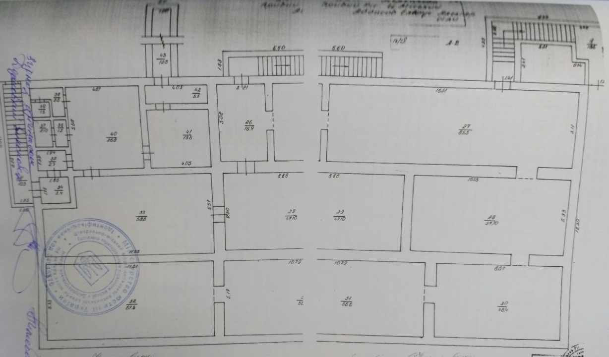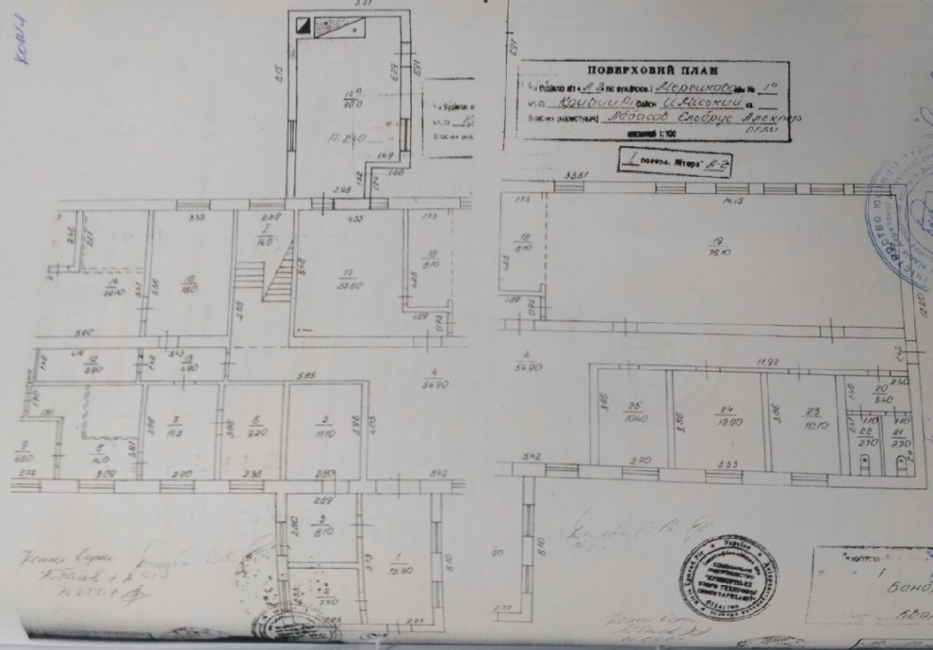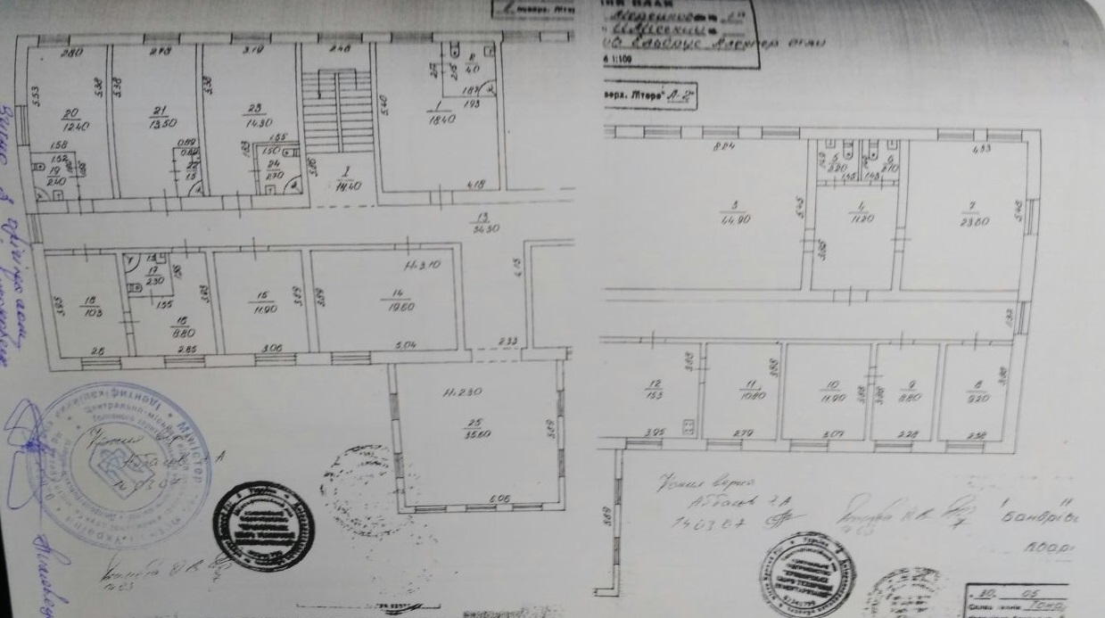 Комплекс будівель та споруд складається з: адміністративний корпус літ. А-2 - 1294,8 кв.м.; прохідна літ. В - 26,1 кв.м.; деревообробна майстерня літ. Г - 237,2 кв.м. (зруйнована); склад літ. Д - 62,2 кв.м. (зруйнований), огорожа №1-5. Технічний стан незадовільний, потребує ремонту. Відключене опалення, водопровід, каналізація та енергопостачання.Призначення - будівлі вільного призначення (кафе, офіс). Право на земельну ділянку не зареєстровано в порядку, встановленому законодавством.