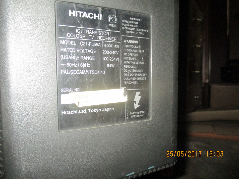 Телевізор Hitachi, модель: C21-FL55A, чорного кольору, б/в. Робочий стан не перевірено.