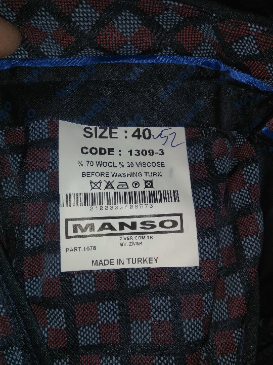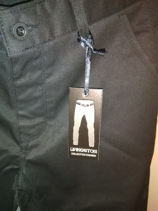 Штани чоловічі в асортименті, різних кольорів, упаковані в індивідуальну упаковку в кількості 66 одиниць. Наявні надписи на ярлику:"Manso.70% wool, 30% viscose.Made in Turkey", темно-сині, з упаковки по 8шт., розміри:40-52; "Livingston", чорні, 30 пар, розміри: 33-44; "Cekar", темно-сині джинсові, розміри: 28-33, 6 пар; "Pitbull.Men's wear" 6 пар. Маркування українсько. мовою відсутнє.