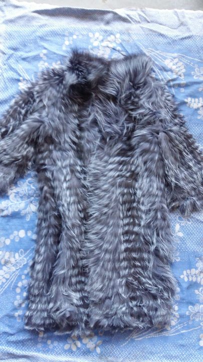 Хутряний виріб - жіночий кардеган, світло-сірого кольору, розмір XL, з ярликом "JIN Diao DIAO FUR", довжиною 93 см.